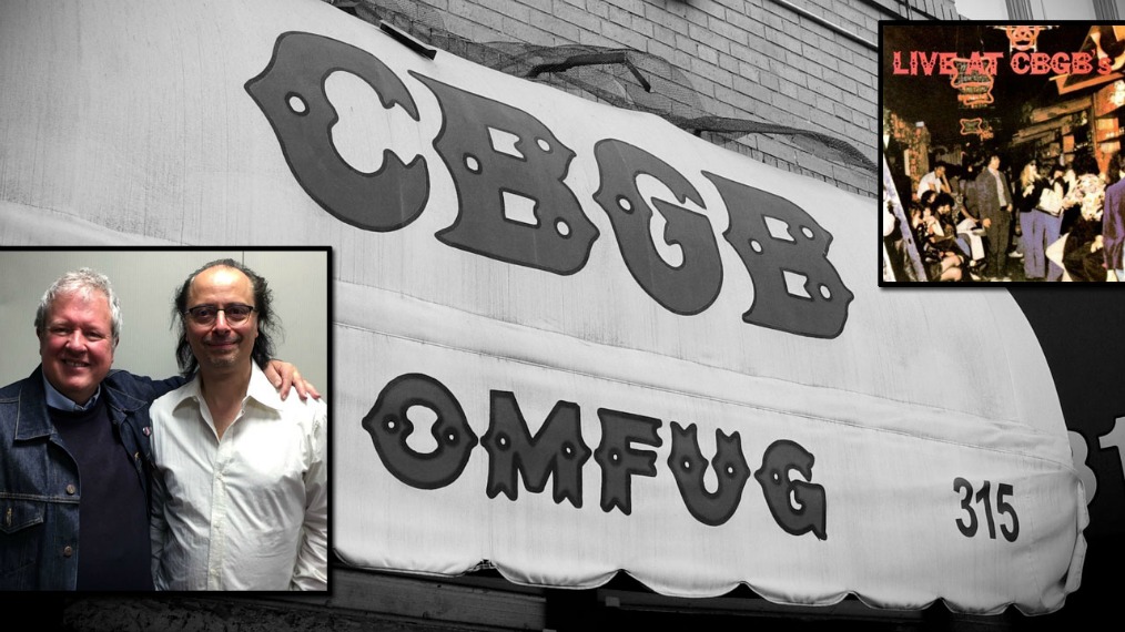 Chris Frantz and "Cavalcade" host Paul Cavalconte, plus the CBGBs awning.