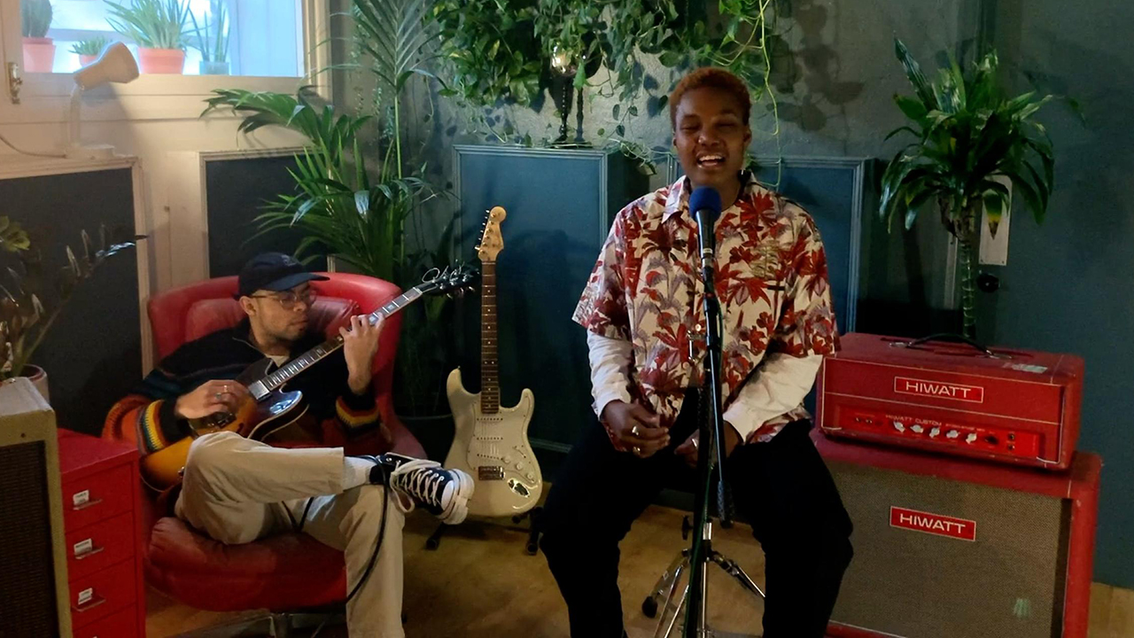 Arlo Parks performing with guitarist Alex Blake for FUV Live.